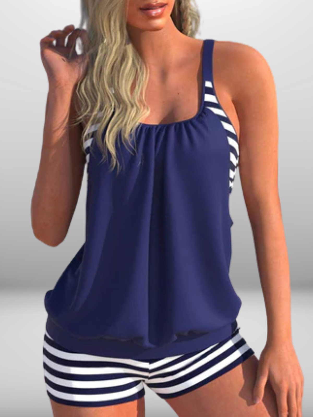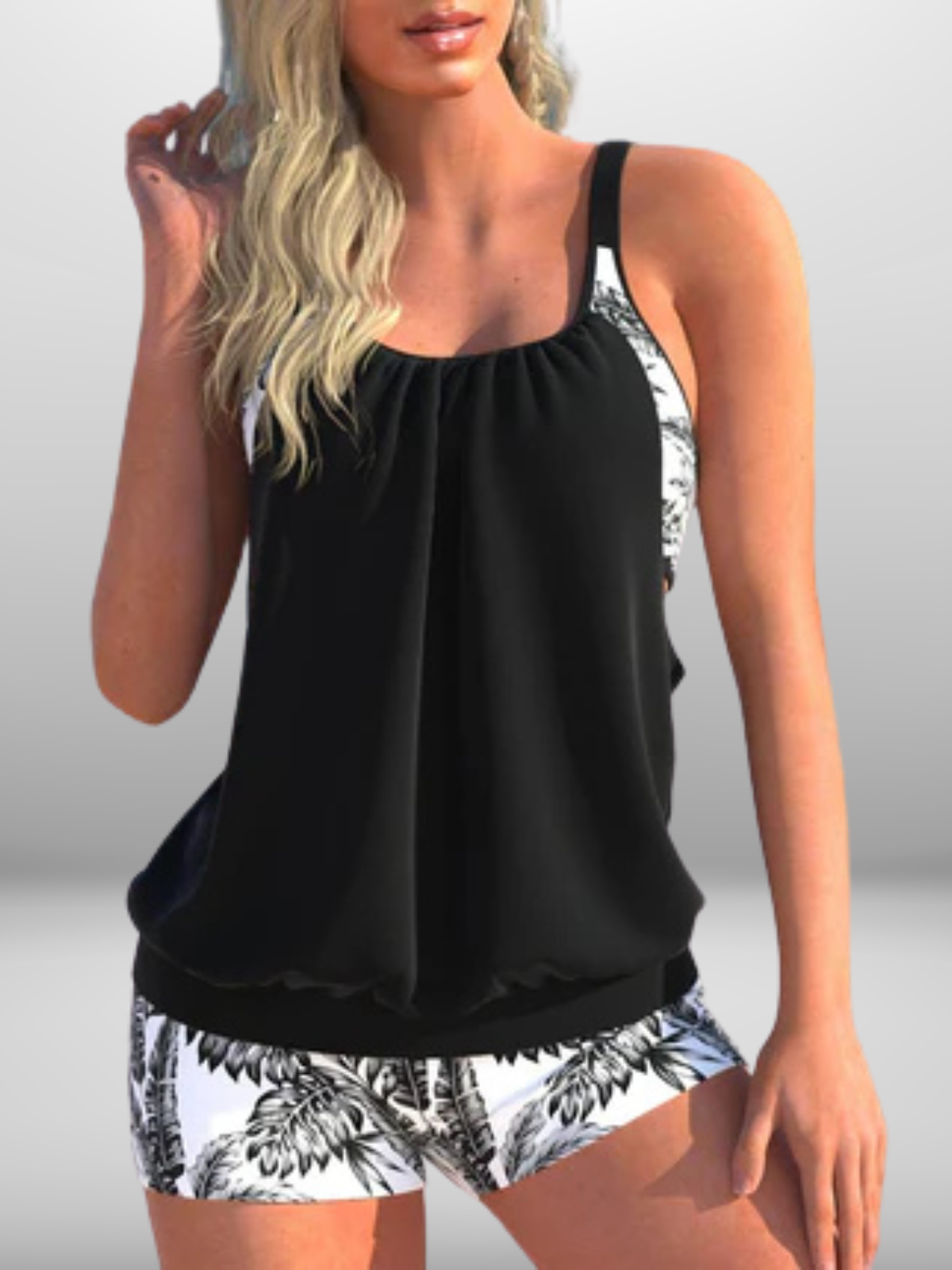 Vionora is de perfecte tankini voor vrouwen die willen stralen met stijl én comfort. Het moderne twee-delige ontwerp met flatterende tankini top biedt een elegante look die je natuurlijke vormen op een subtiele manier accentueert. Ideaal voor zonnige dagen aan het strand, ontspanning bij het zwembad of actieve strandactiviteiten.