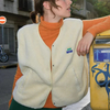 Deze wollen bodywarmer voor dames biedt een comfortabele stijl in een lichtgewicht formaat, perfect om te dragen als extra laagje bij kouder weer. De knoopsluiting aan de voorkant zorgt voor een nostalgische touch, terwijl het strakke silhouet het geheel modern en draagbaar houdt. Draag hem over lange mouwen of een gebreide trui voor extra warmte en een visueel interessante look.