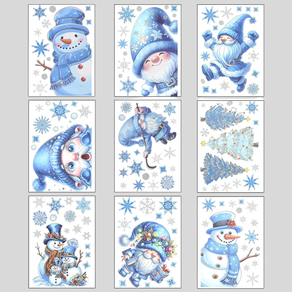 Creëer een feestelijke etalage met deze extra grote stickerset met feestelijke designs in blauwtinten. Deze collectie is ontworpen voor gladde glasoppervlakken en kan herhaaldelijk worden aangebracht voor seizoensgebonden decoratie. Geschikt voor woonruimtes, etalages of seizoensdisplays in elke ruimte.