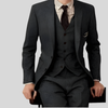 Dit driedelige herenpak bestaat uit een blazer, een gilet en een slim-fit pantalon, ontworpen voor formele gelegenheden en zakelijke gelegenheden. Het pak combineert een gestructureerde look met praktische details voor een moderne en verfijnde uitstraling.