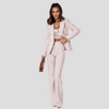 Een stijlvolle tweedelige set met een blazer en bijpassende pantalon, ontworpen voor elegantie in het warme seizoen. De strakke snit en verfijnde lijnen maken de set ideaal voor werk, vergaderingen of een chique casual outfit.