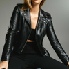 De bikerjas geeft een stoere en vrouwelijke uitstraling door het strakke silhouet en de nette afwerking. De zilverkleurige ritsen en sierstiksels zorgen voor een elegante twist, waardoor de jas zowel bij dagelijkse outfits als avondlooks past.