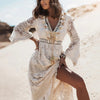 Liora – Bohemian Maxi Jurk met Kant en Elegante Flair Mouwen