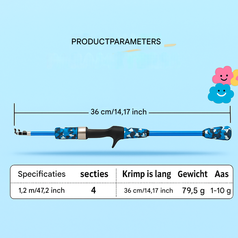 ✔️ Telescopische hengel – Gemakkelijk in te klappen en mee te nemen.