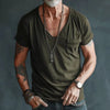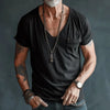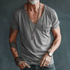 Het T-shirt is de ideale keuze voor warme zomerdagen. Met zijn diepe V-hals, opgerolde mouwen en stijlvolle borstzak biedt dit shirt zowel comfort als een stoere uitstraling. De zachte, ademende stof zorgt ervoor dat je koel blijft, terwijl het ontwerp een nonchalante, maar verfijnde look geeft.